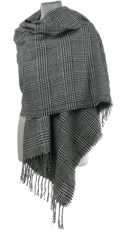 Dámska čierno-biela kockovaná maxi šál s strapcemi