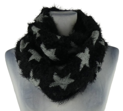Dámska čierno-sivá hviezdičkovaná chlpatá golierová šál