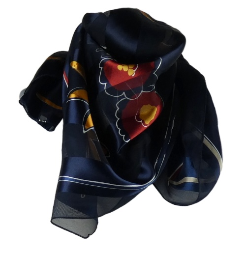 Dámský tmavomodrý pruhovaný šátek s kvetmi