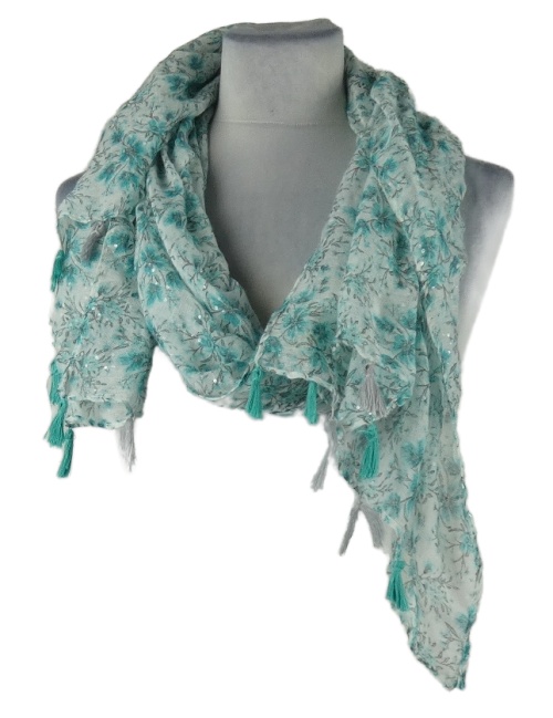 Dámska modrá kvietkovana šál s strapcemi Janina