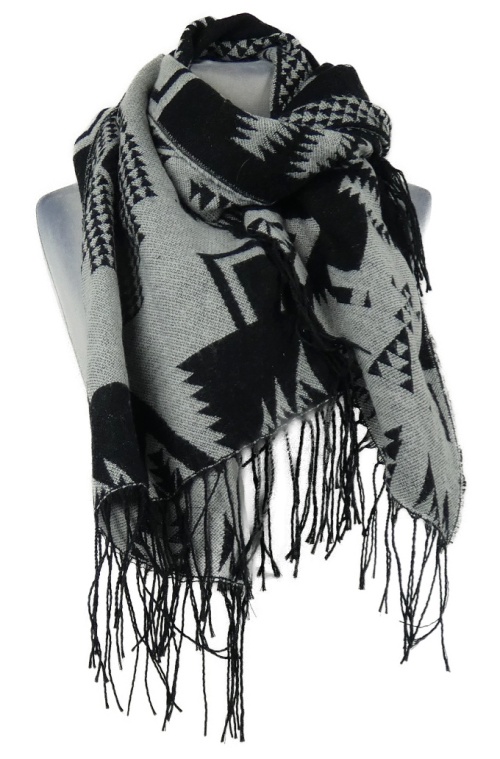 Dámska čierno-sivá vzorovaná šál s strapcemi