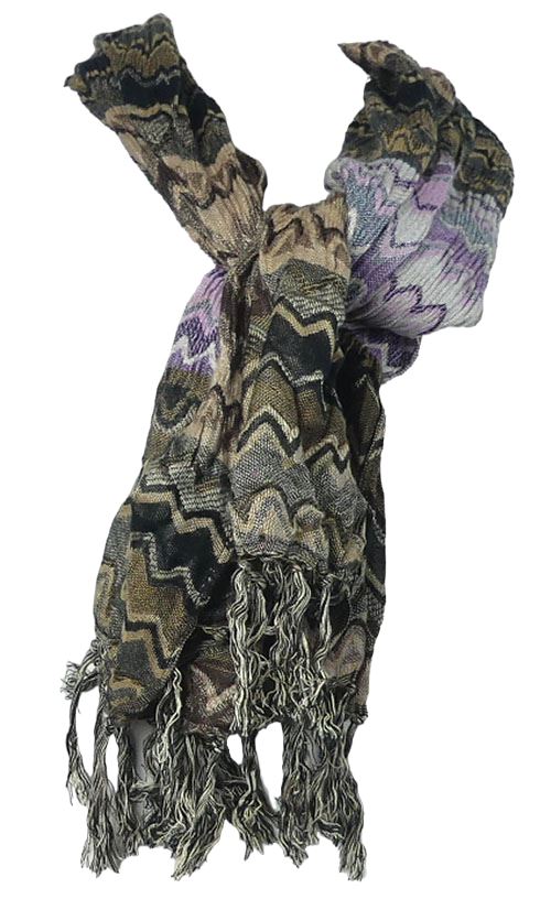 Dámska hnědo-lila vzorovaná šál s strapcemi