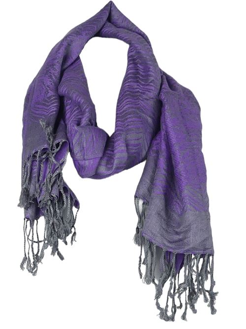 Dámska sivo-fialová vzorovaná šál s strapcemi