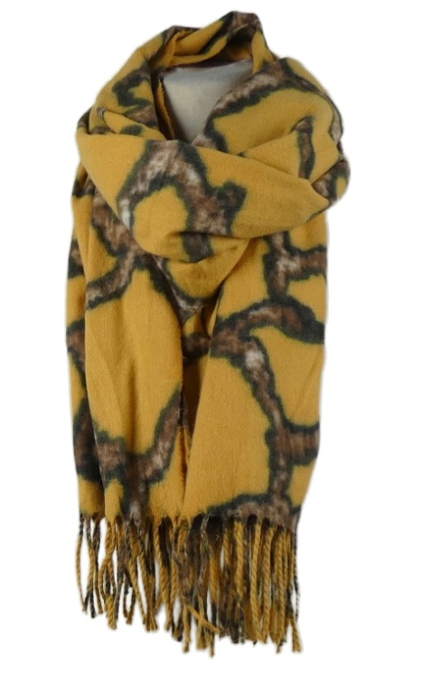 Dámska okrovo-hnedá vzorovaná šál s strapcemi