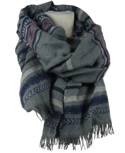 Dámska sivo-tmavomodrá vzorovaná šál s strapcemi