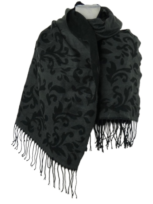 Dámska sivo-čierna vzorovaná šál s strapcemi