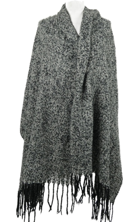 Dámska čierno-sivá melírovaná pletená šál s strapcemi Pieces