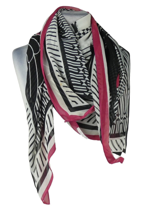 Dámský černo-smetanovo-růžový vzorovaný šátek