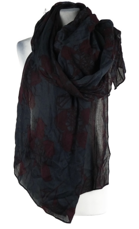 Dámska tmavomodro-vínová vzorovaná šál
