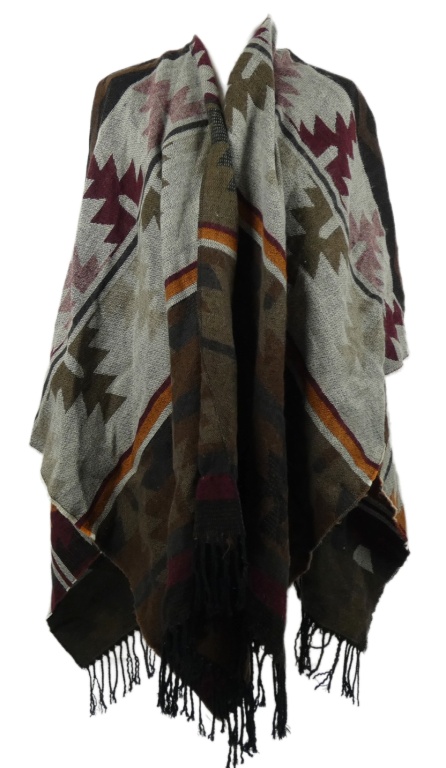 Dámska hnedo-sivá vzorovaná maxi tepláková šál s strapcemi