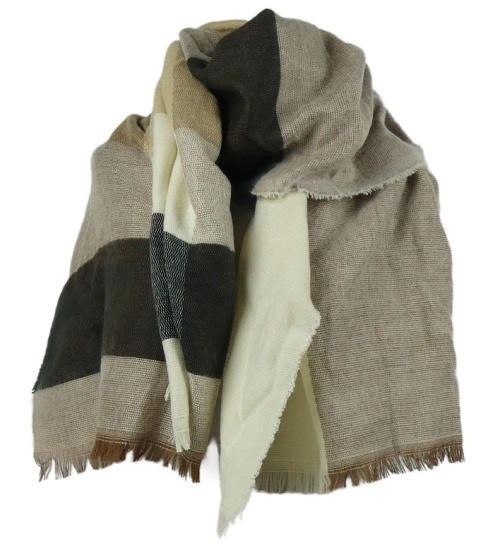 Dámska béžovo-hnedá vzorovaná šál s roztřepením