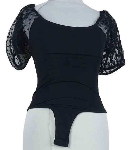 Dámske čierne body s tylovymi balonovými rukávy Primark