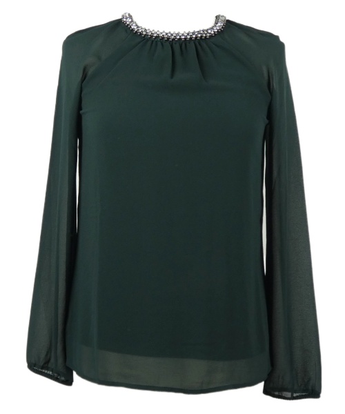 Dámska khaki šifónová blúzka s korálkami a kamienkami S. Oliver