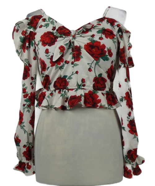 Dámska biela crop blúzka s kvetmi a volnými rameny H&M