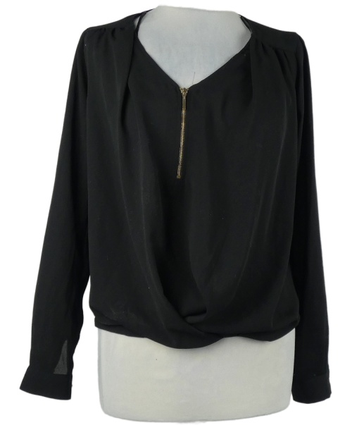Dámska čierna šifónová balonová blúzka so zipsom F&F