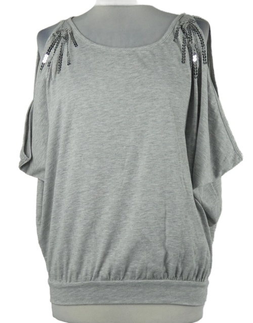 Dámska sivá balonová blúzka s volnými rameny a flitrami