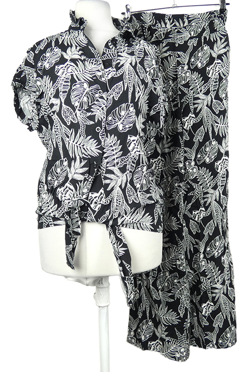 2set- Dámska čierno-biela vzorovaná blúzka s uzlem + palazzo nohavice