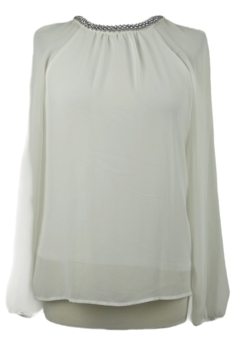 Dámska biela šifónová blúzka s korálkami a kamienkami S. Oliver