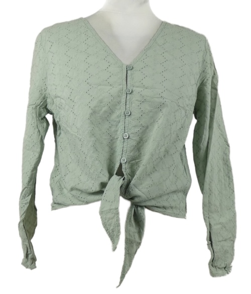Dámska světlekhaki madeirová crop blúzka s uzlom H&M
