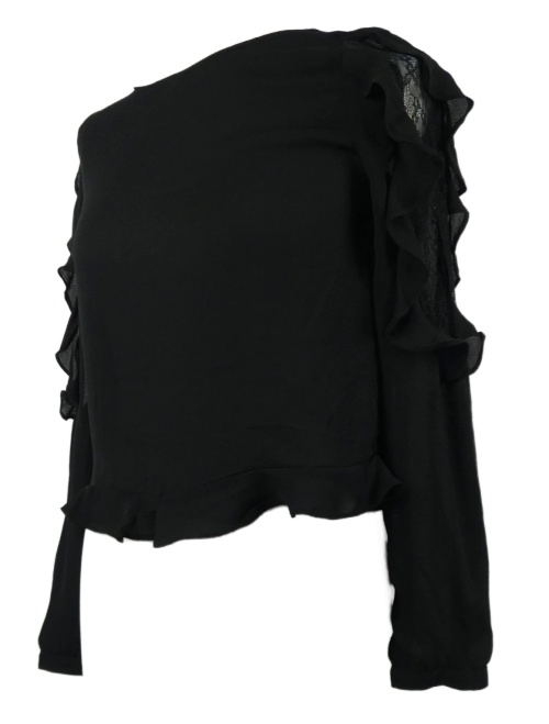 Dámska čierna šifónová crop blúzka s volánikmi Zara