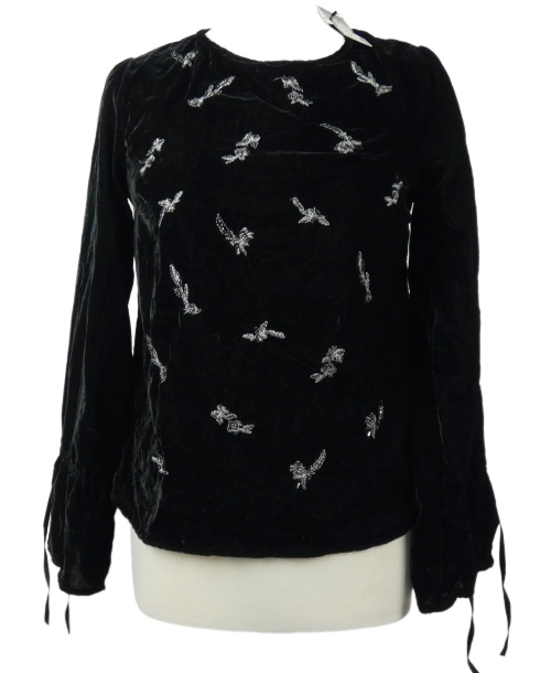 Nové - Dámska čierna zamatová blúzka s kvietkami Primark