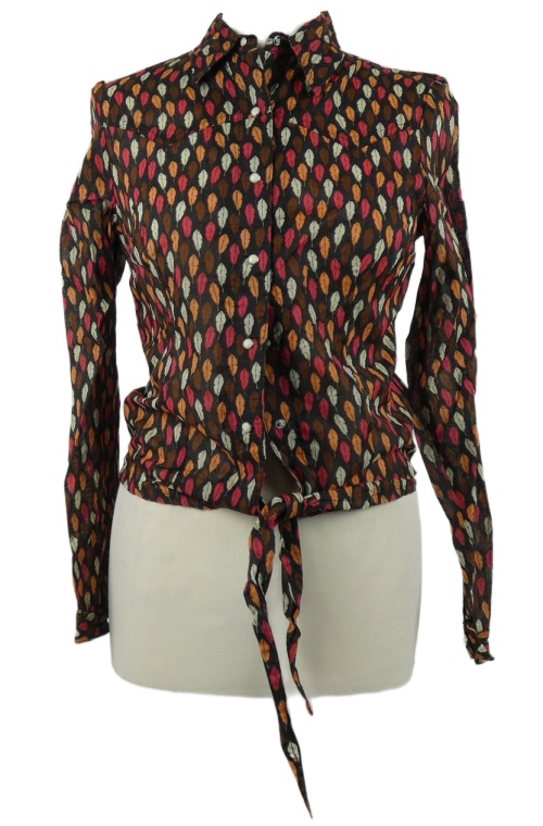 Dámska čierno-farebná vzorovaná crop blúzka s uzlom 3Suisses