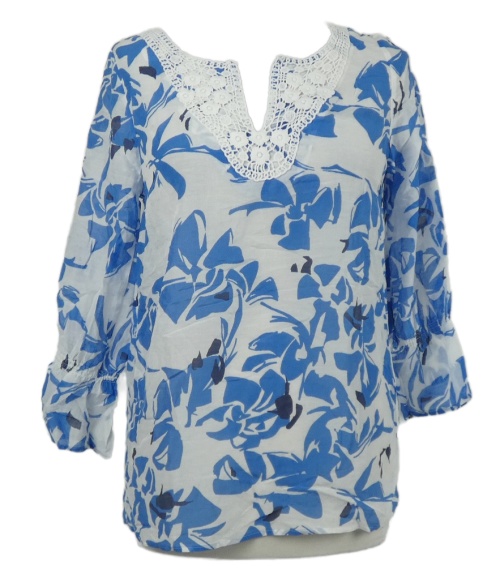 Dámska modro-biela kvetovaná blúzka s čipkou More&More