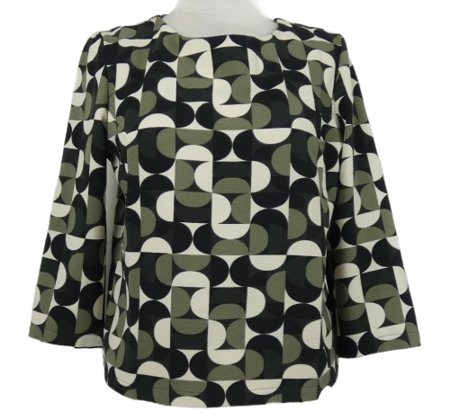Dámska čierno-kaki-biela vzorovaná blúzka Opus