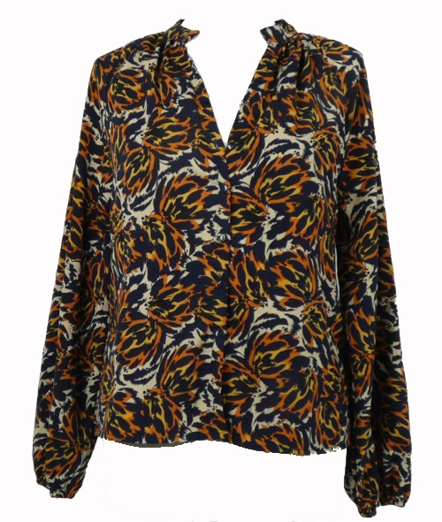 Dámska tmavomodro-oranžovo-žltá vzorovaná blúzka Object
