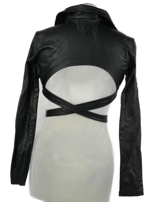 Dámska čierna koženková crop blúzka so zavazováním