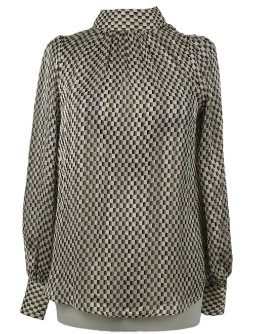 Dámska smetanovo-hnedo-čierna kockovaná nařasená šifónová blúzka s rolákom H&M
