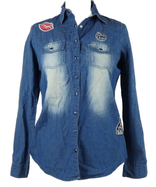 Dámská modrá halenka riflového vzhledu s obrázkami Chillin