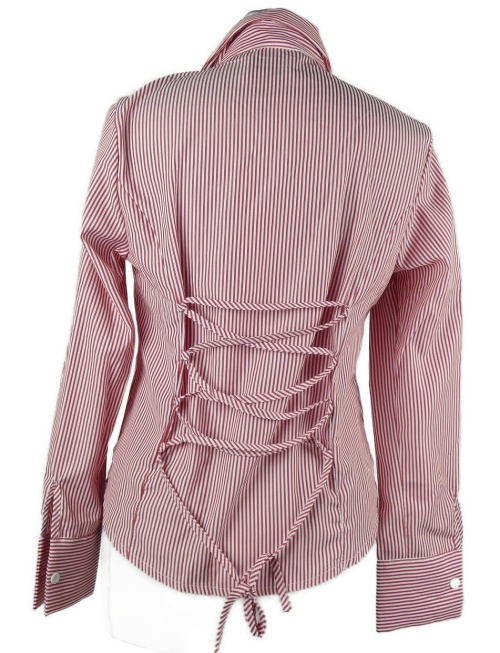 Dámska červeno-biela prúžkovaná blúzka so šněrováním na zádech