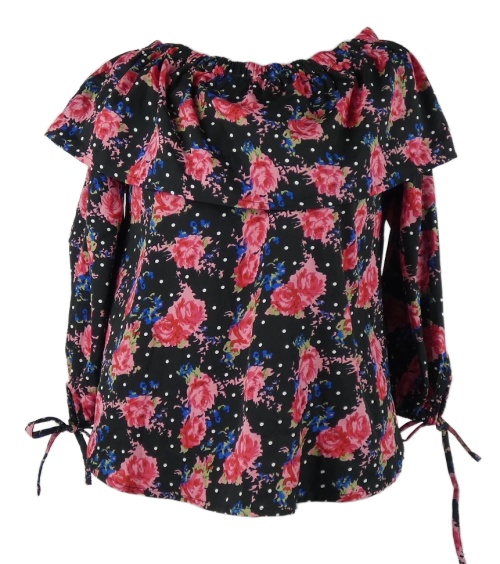 Dámska čierno-ružová kvetovaná blúzka s volánikom Be You