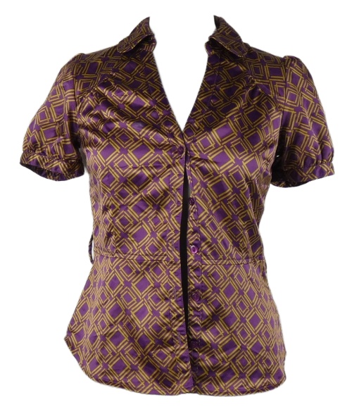 Dámska fialovo-horčicová kockovaná saténová blúzka H&M