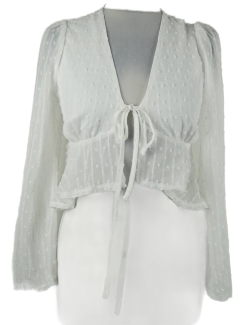Dámská bílá vzorovaná šifonová crop halenka na zavazování Shein
