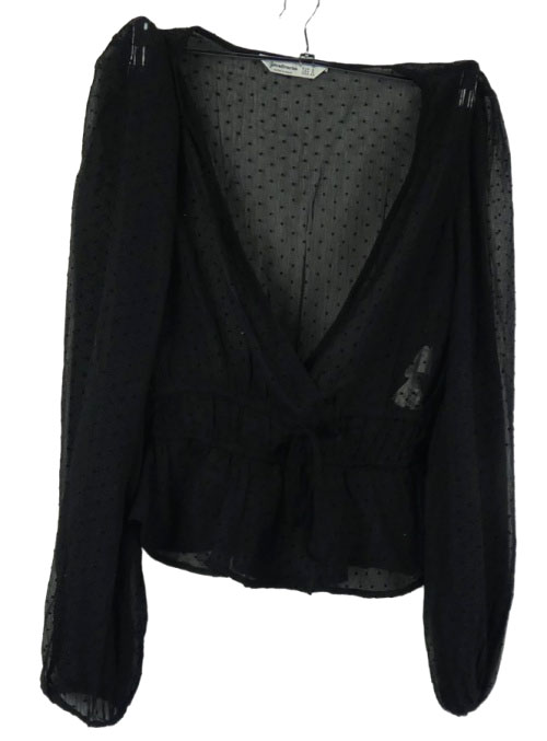 Dámska čierna bodkovaná šifónová crop blúzka Stradivarius