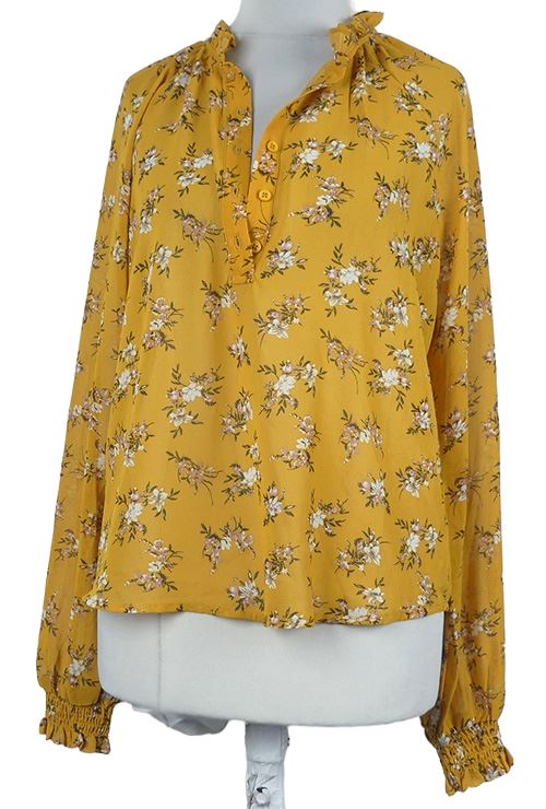 Dámska okrová kvetovaná šifónová crop blúzka Na-KD