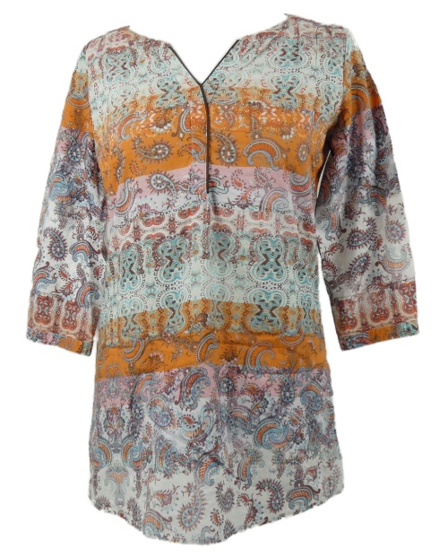 Dámska oranžovo-biela vzorovaná blúzka