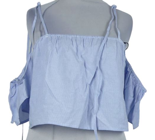 Dámska světlemodro-biela prúžkovaná crop blúzka s volnými rameny Forever21