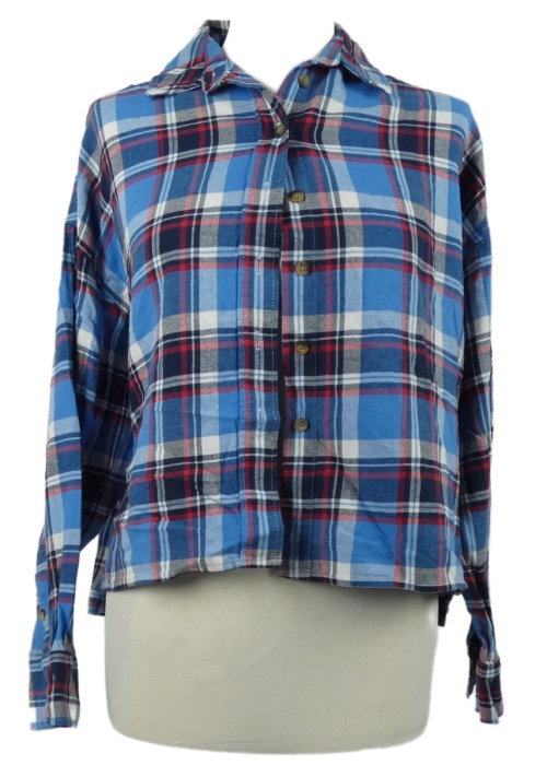 Dámska světlemodro-červená kockovaná crop blúzka FB Sister