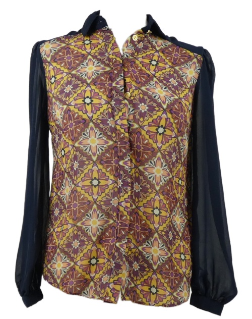 Dámska vínovo-tmavomodro-žltá vzorovaná šifónová blúzka Atmosphere