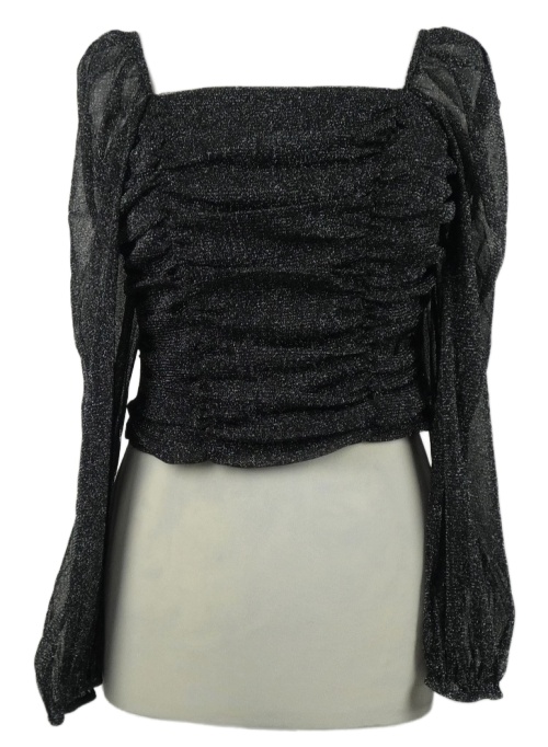 Dámska čierno-strieborná řasená crop tylová blúzka