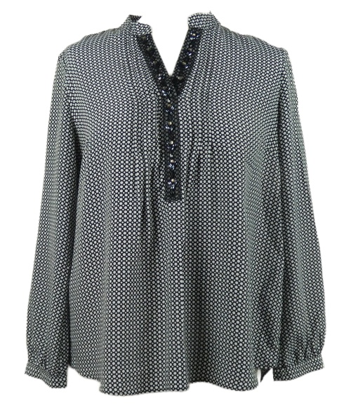 Dámska čierno-biela bodkovaná blúzka s korálkami M&S