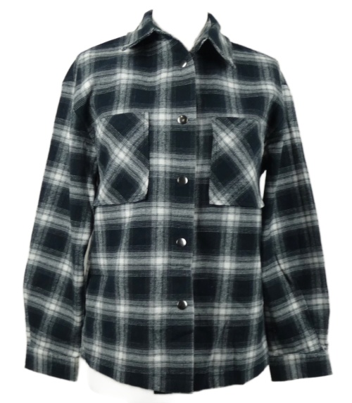 Dámska tmavomodro-biela kockovaná flanelová košeľová bunda ADPT