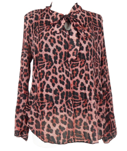 Dámska ružovo-sivá vzorovaná šifónová plisovaná blúzka