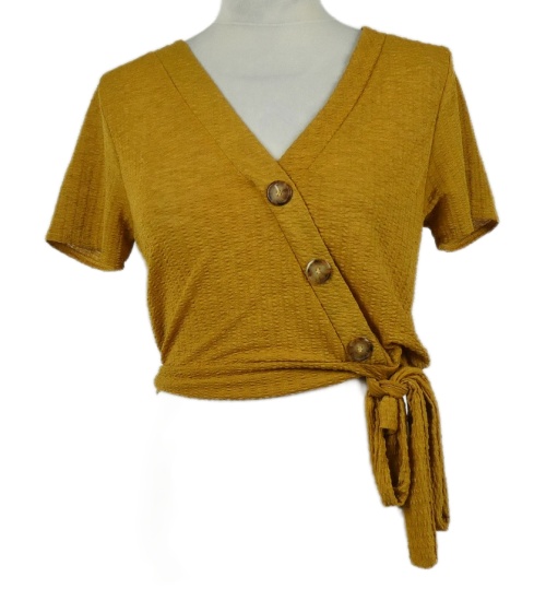 Dámska horčicová crop blúzka s mašlou Pull&Bear
