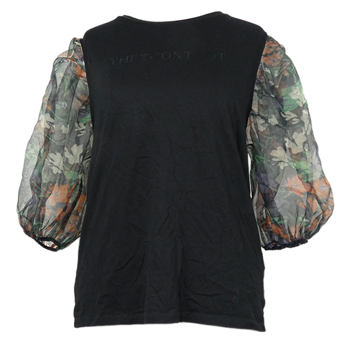 Dámska čierna blúzka s kvetovanymi šifónovymi rukávy Zara