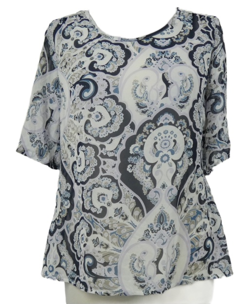 Dámska tmavomodro-biela vzorovaná šifónová blúzka B. Young