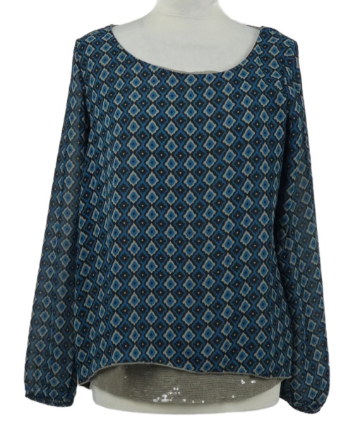 Dámska modro-čierno-sivá vzorovaná šifónová blúzka s flitrami Rick Cardona